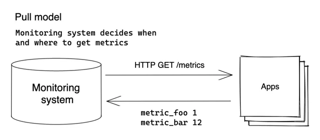 Pull 模型是被 Prometheus 推广的一种方法,由监控系统决定何时以及从哪里拉取指标: