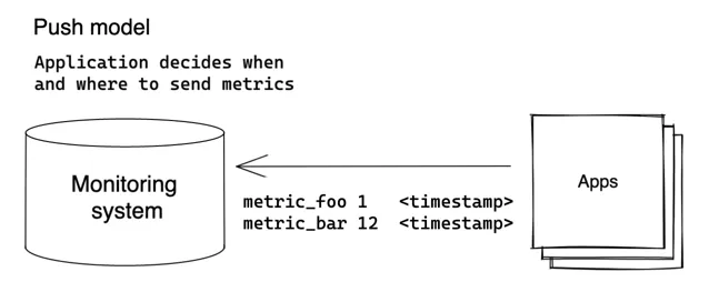 - 增加了对被监控程序的配置复杂性。每个应用程序都需要独立配置向度量系统发送数据的地址。还需要配置指标推送间隔以及在指标传递失败时采取的策略。